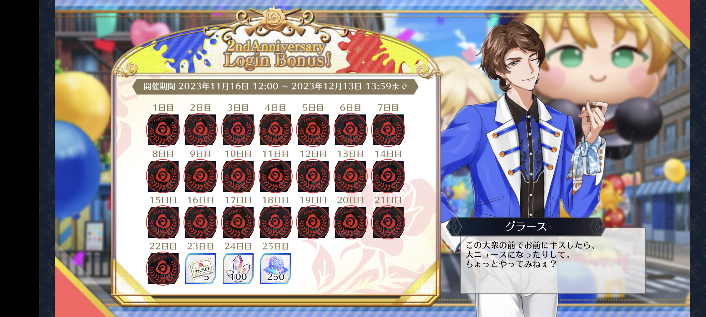こちらが2年連続周年天井男、グラースです。