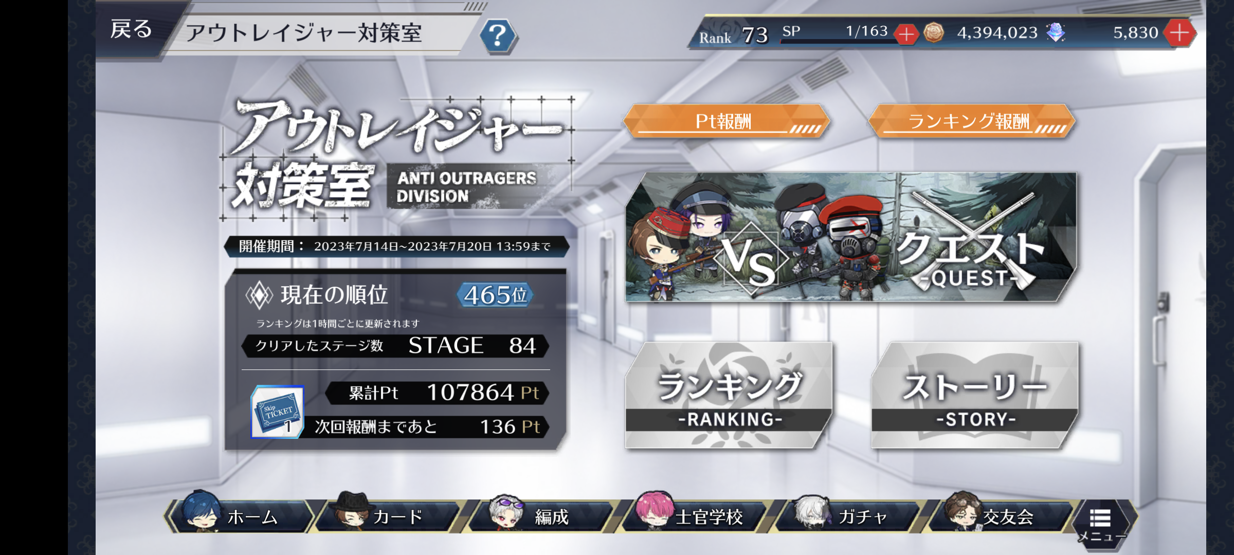 これでだいたい400位台って……自分より熱心な課金プレイヤーが400人はいると喜ぶべきか、400人しかいないとジャンル存続を危惧するべきか。前提条件違うし大手の他ジャンル引き合いに出すのも気が引けるところだが、ヒプマイARBを無課金で配布カード4〜完凸まで走って1万数千位、特効引けても良くて5000位台あたりなのを考えると……