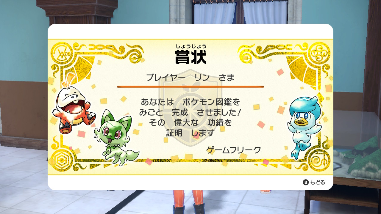 ポケモンスカーレットのパルデア図鑑を完成させました!やったね!