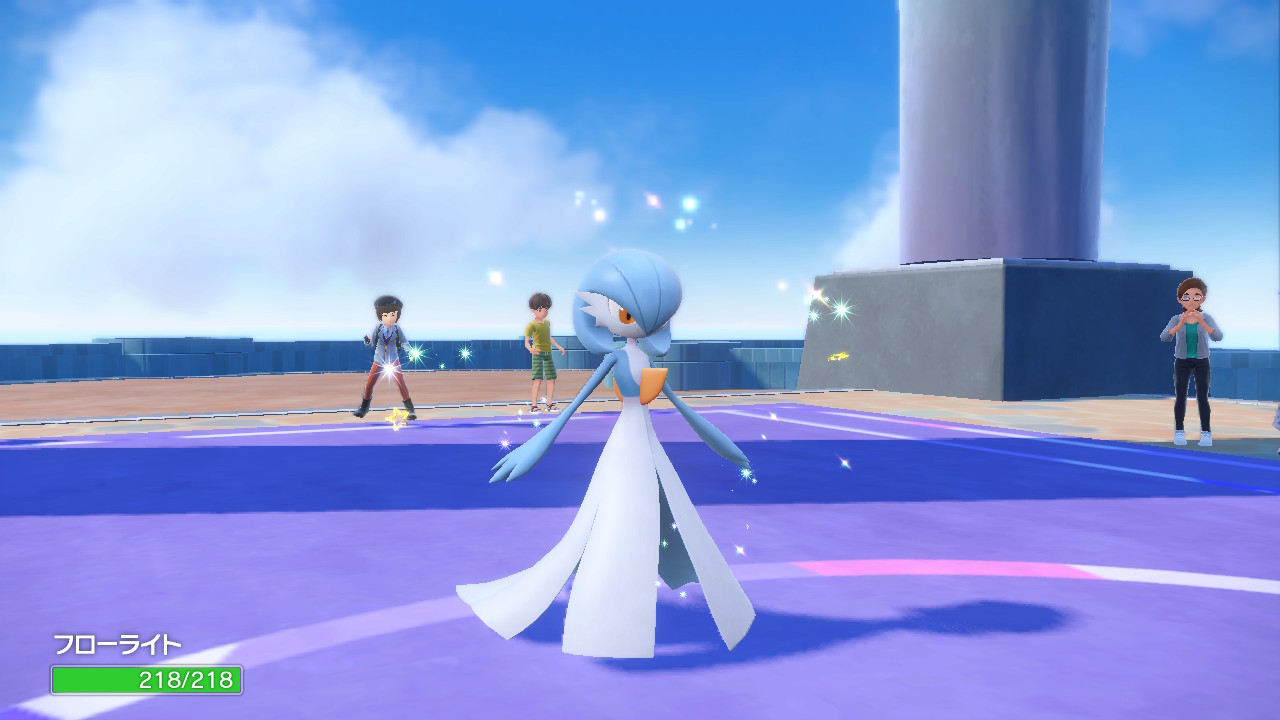 通常では薄い緑の頭と腕のところが水色になってるのがオシャレですよねサーナイトの色違い。歴代で自分が捕まえた色違いの中で一番好きな配色かもしれない。