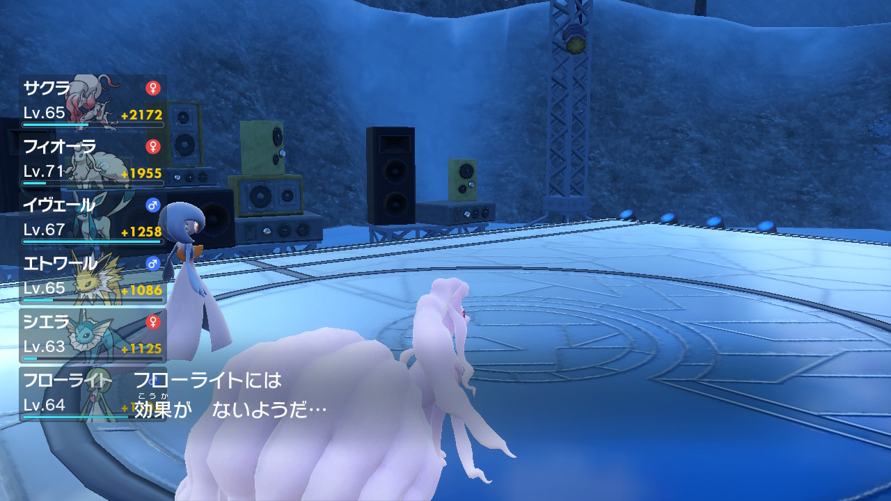 途中でグレイシアに交代したけどやろうと思えばアロキュウ1匹で5タテ狙えた説はある。